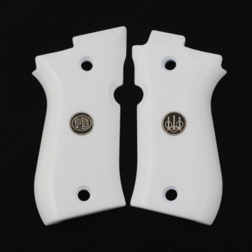 Beretta 81F - 81 FS - 84 F - 84 FS - 84 Cheetah (Acrylic White) Brass Logo Handgun Grip