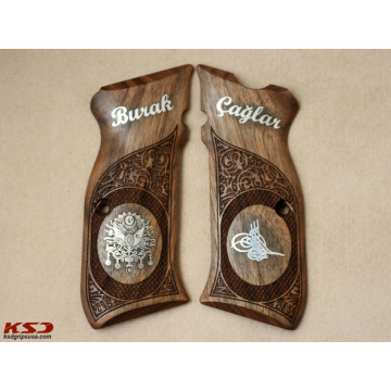 Sarsılmaz Kılınç 2000 Mega / B6 Hawk Wooden (Turkish Walnut) Brass Logo Handgun Grip